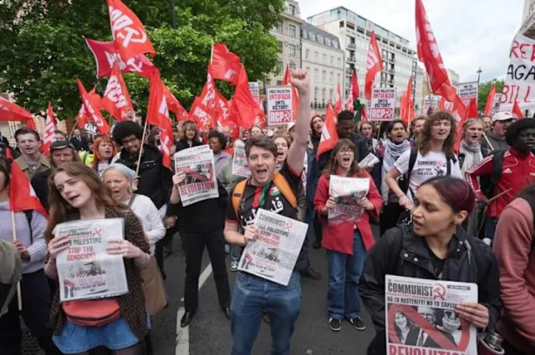 Londra’da binlerce kişi, hükümetin kamu harcamalarını kısmasına ve refah sisteminde yaptığı reformlara karşı sokağa çıktı.