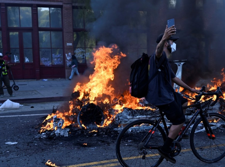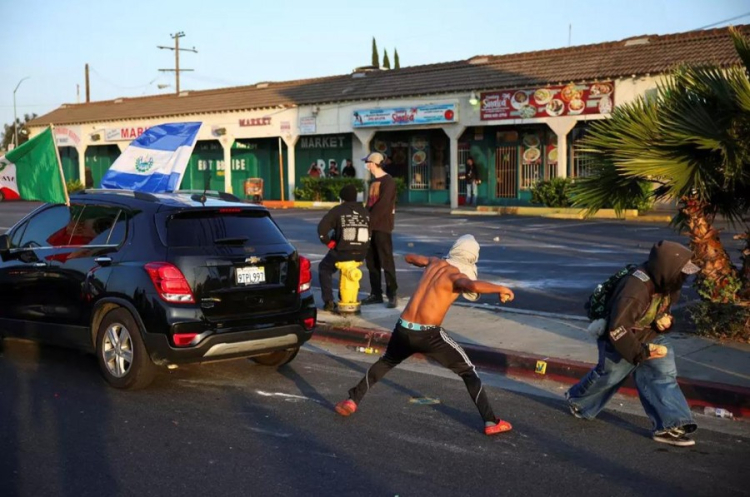 LAPD, Arcadia Caddesi'nde araçların durdurulup yakıldığını doğruladı. Polis, protestoları "yasadışı toplantı" ilan ederek çok sayıda kişiyi gözaltına aldı.