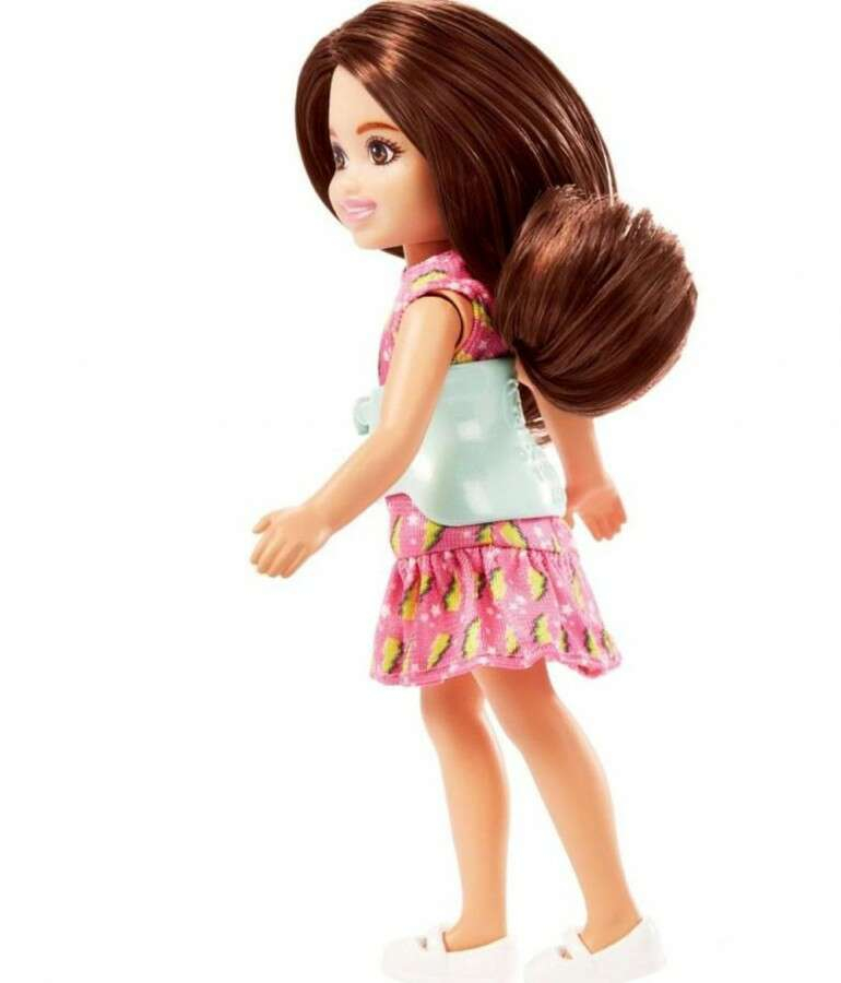 Chelsea'nin yaklaşık 15 santimetre boyundaki yeni versiyonu, çıkarılabilir yeşil sırt desteği bulunan pembe bir elbise ve beyaz ayakkabılar giyiyor. Bebeğin kahverengi saçlarına dalgalı bir şekil verilmiş.