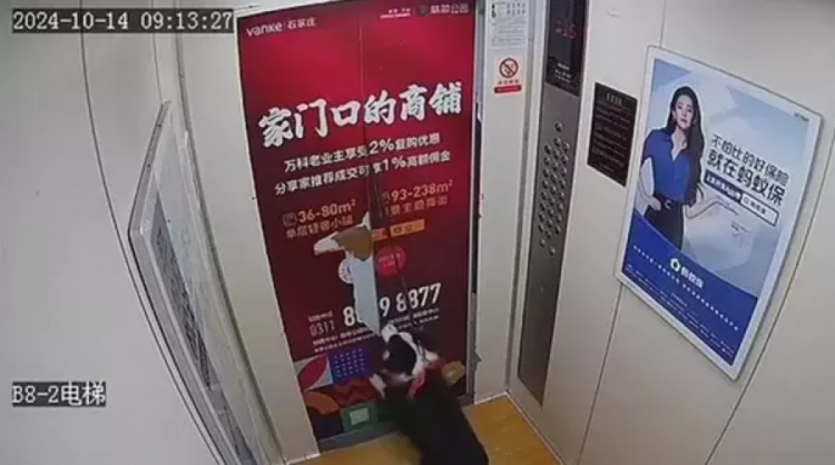 Çin'in Shijiazhuang kentinde yaşanan olay, apartmanın güvenlik kameralarına an be an yansıdı. 14 Ekim tarihinde kaydedilen görüntülerde, bir köpeğin asansör kapısına sıkışan tasması nedeniyle ölümden döndüğü anlar yer aldı.