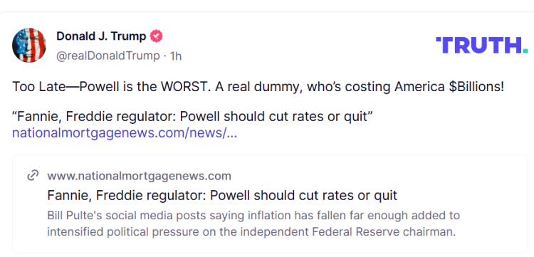 Trump, sosyal medya hesabından "Powell en kötüsü, Amerika'ya milyarlarca dolara mal olan gerçek bir aptal" dedi.