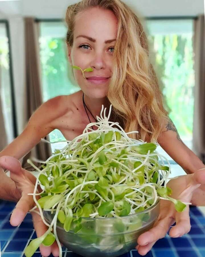 Pişirilmeyen otla yapılan yemeklere ağırlık verdiği belirtilen Samsonova'nın son dört yıldır "tamamen çiğ vegan bir diyet" uyguladığı ve sadece ayçiçeği çekirdeği filizleri ve meyve ile beslendiği öne sürülüyor.