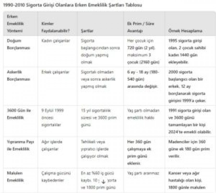 Sigorta başlangıç tarihi ve çalışma süresi gibi unsurların doğru değerlendirilmesiyle, erken emeklilik mümkün hale gelebilir.
