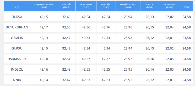 İŞTE BURSA'DA İLÇE İLÇE AKARYAKIT FİYATLARI:
