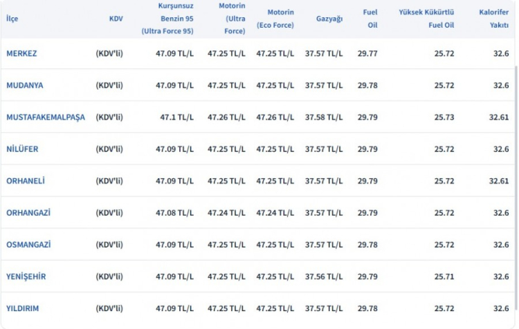 Peki, 28 Şubat 2025 itibarıyla Bursa İstanbul, İzmir ve Ankara'da benzin ve motorin fiyatları ne kadar?