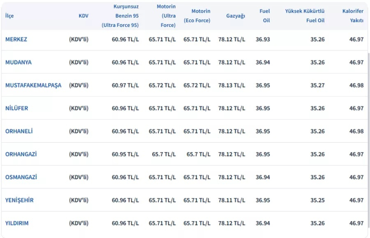 ABD, İsrail ve İran arasındaki savaş, petrol fiyatlarının fırlamasına neden oldu. Savaş öncesi 70 dolar seviyesinde bulunan brent petrolün varil fiyatı 110 dolar seviyesini gördü. Brent petrol fiyatlarındaki fahiş yükseliş iç piyasalarda akaryakıta zam olarak yansıyor. Peki Bursa'da son durum ne?