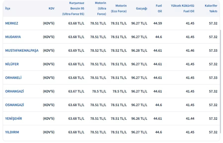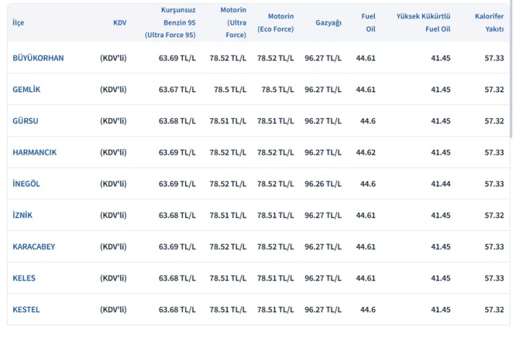 Zam öncesi güncel akaryakıt fiyatları şu şekilde:
