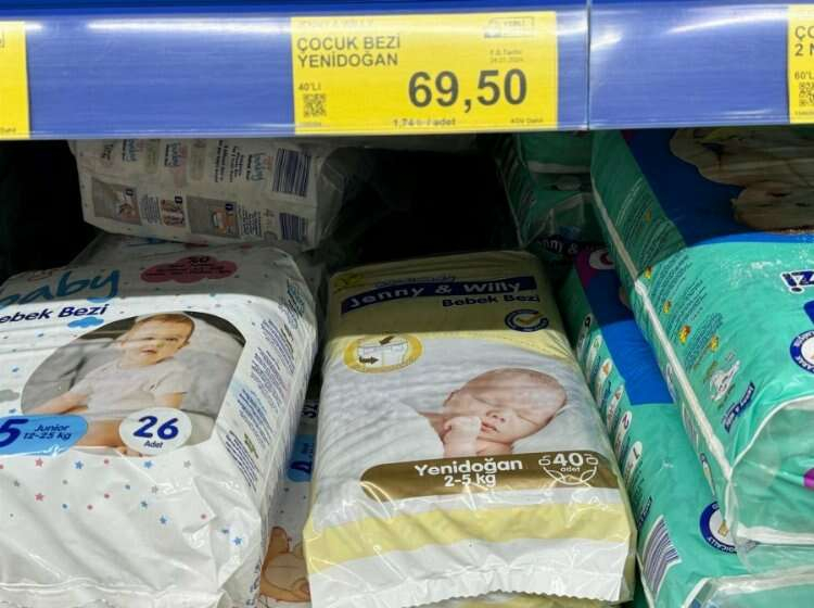 Anne babalar zincir marketlere girip bebeklerine bez almak istediğinde şu fiyatlarla karşılaşıyor: