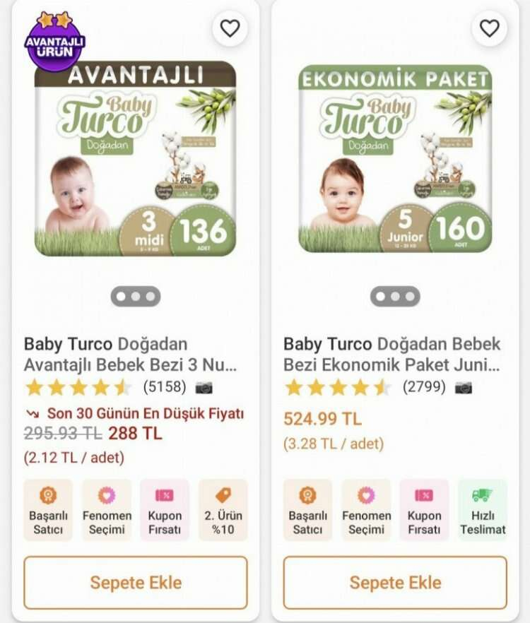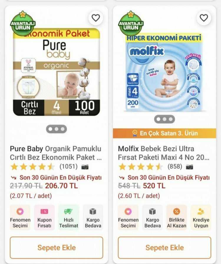 Anne babalar internet alışverişi yaparken bebeklerine bez almak istediğinde şu fiyatlarla karşılaşıyor: