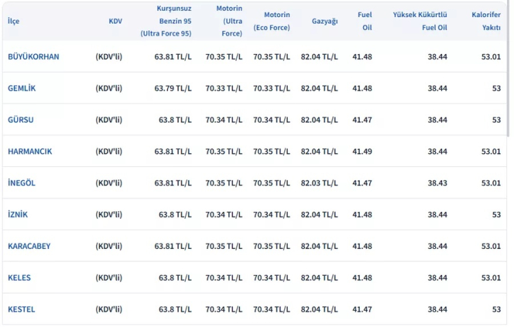 İstanbul Anadolu yakası akaryakıt fiyatları