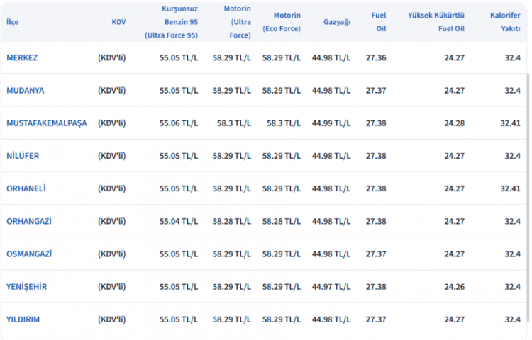 İSTANBUL ANADOLU YAKASI AKARYAKIT FİYATLARI