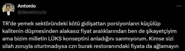Şimdi de CZN Burak'ın restoranlarındaki fiyatlar sosyal medyada gündem oldu. Bir müşterinin paylaştığı adisyon tartışma yarattı.