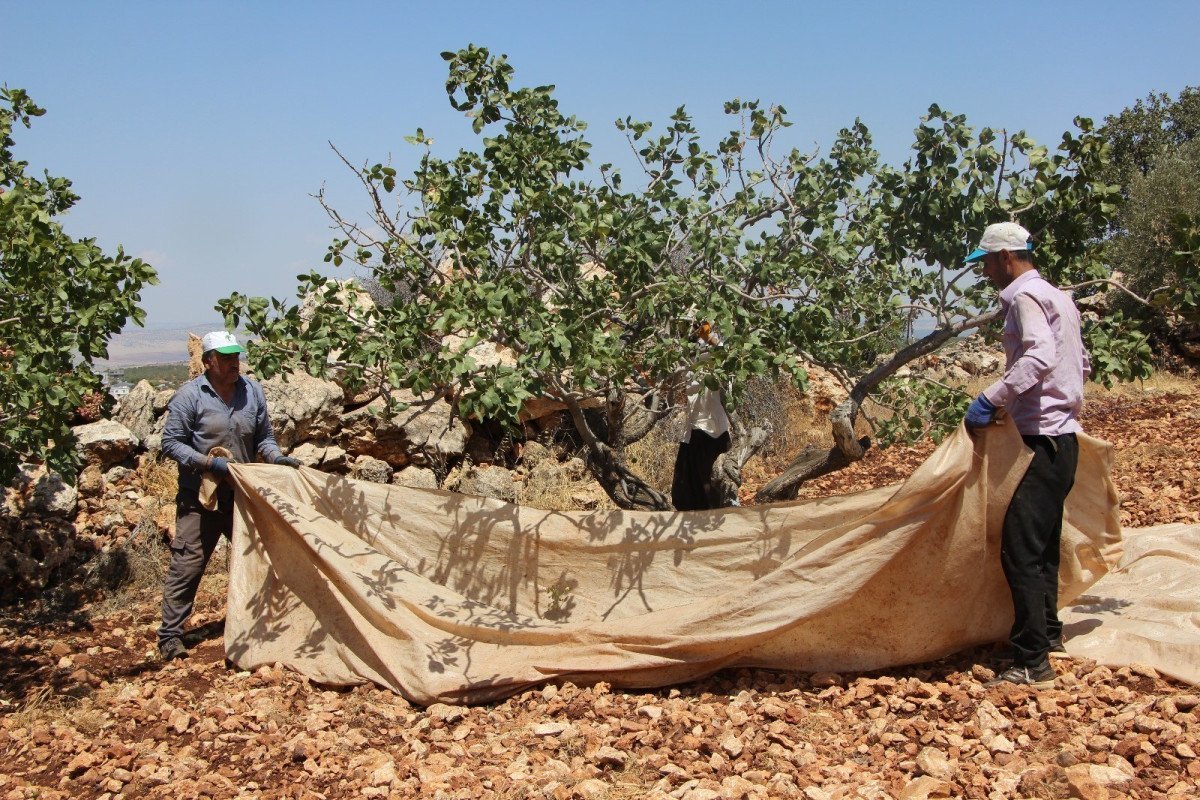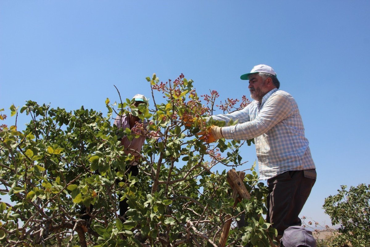 Baklavada kullanılan ve "boz" fıstık olarak adlandırılan çeşidin hasadına başlanırken sabah saatlerinde gruplar halinde fıstık bahçelerine giden çiftçiler, yaklaşık 10 saat çalışıyor.Ağaçların altlarına branda açtıktan merdiven ile ağaçların üstüne çıkan çiftçiler, dallarda elleriyle tek tek fıstıkları salkımlarından kırarak topluyor. Brandaların üzerine dökülen fıstıklar ardından çuvallara dolduruluyor. Traktörlere yüklenen fıstıklar, daha sonra ise salkımlarından ayrıştırılmak üzere fıstık işletme tesislerine götürülüyor.