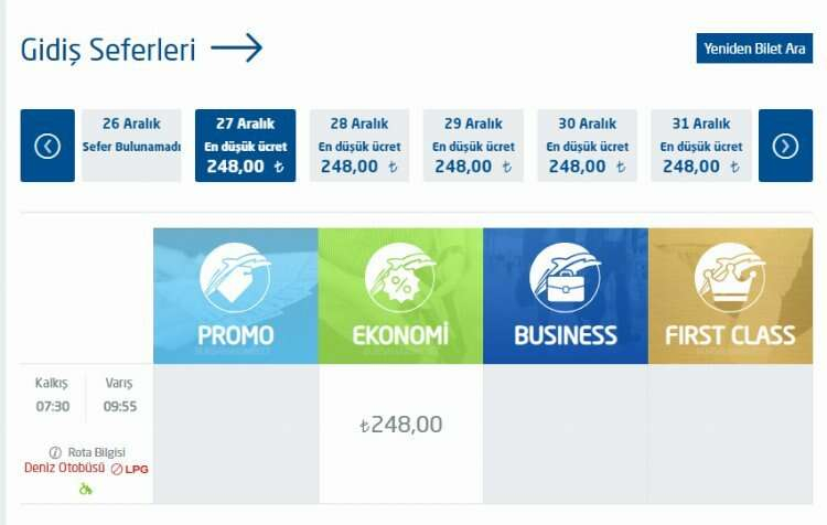 Yeni yıl öncesi 248 TL'ye satılan ekonomisınıfı İstanbul-Bursa seferi biletleri yeni yıldan itibaren 283 TL'ye yükseltildi.