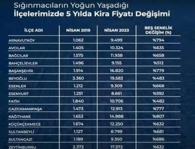 Kira artışları devam ederken İstanbulBüyükşehir Belediyesi'nden bir araştırma paylaşıldı. Sığınmacıların yoğun olarak yaşadığı 15 ilçedeki olağanüstü kira artışı rakamlarla gösterildi ve ilk sırayı Kağıthane aldı.