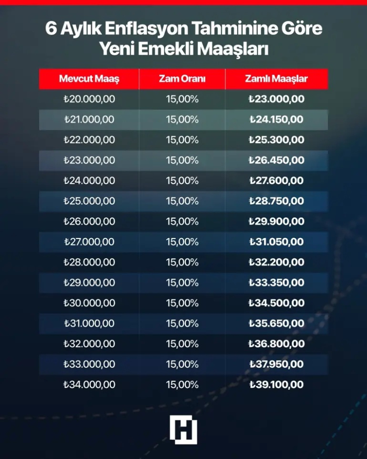 Mevcut hesaplamalara göre, en düşük emekli maaşı üzerinden yapılan projeksiyon da şekillenmeye başladı. Halihazırda 20 bin TL seviyesinde bulunan en düşük emekli aylığının, ek bir yasal düzenleme yapılmaması halinde temmuz zammıyla birlikte yaklaşık 23 bin TL’ye yükselmesi bekleniyor.