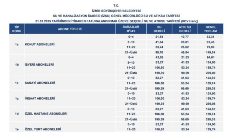 İZSU bütçe taslağında yer alan karara göre 1 Ocak 2025 tarihinden itibaren İzmirliler suyu yüzde 30 daha zamlı kullanacak. İzmir'de en son 5 ay önce yapılan toplantıda su ücretlerine yüzde 45 zam gelmişti.