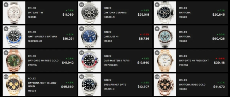 Endekse göre en çok işlem gören 50 modelin içinde 2022'de endeksin başlamasından bu yana en çok yükselen saatler olarak göze çarptı.