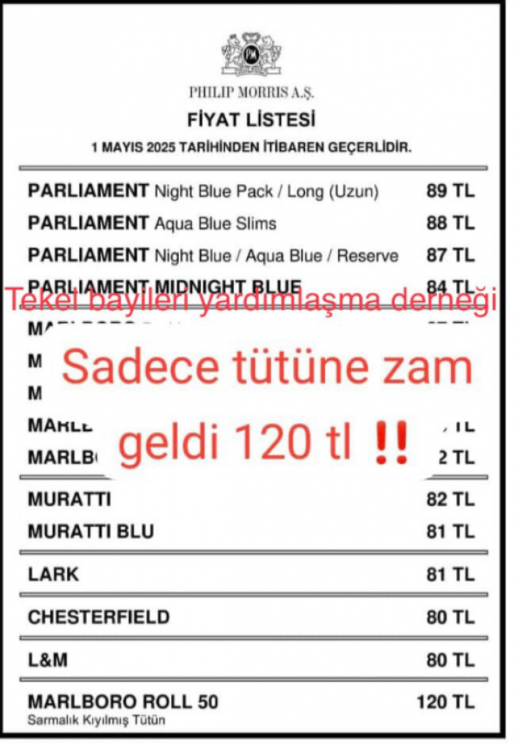 Tekel Bayileri Yardımlaşma Derneği Başkanı Erol Dündar Marlboro tütüne zam geldiğini duyurdu.