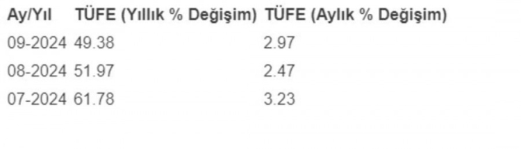 Yılın dörtte üçü geride kaldı. Enflasyon oranları TÜİK'in rakamlarına göre; TÜFE'deki (2003=100) değişim 2024 yılı Eylül ayında bir önceki aya göre %2,97, bir önceki yılın aralık ayına göre %35,86, bir önceki yılın aynı ayına göre %49,38 ve on iki aylık ortalamalara göre %63,47 olarak gerçekleşti. Ekim, Kasım, Aralık ayının enflasyon verilerine göre ise 2025 yılı maaşları belli olacak.