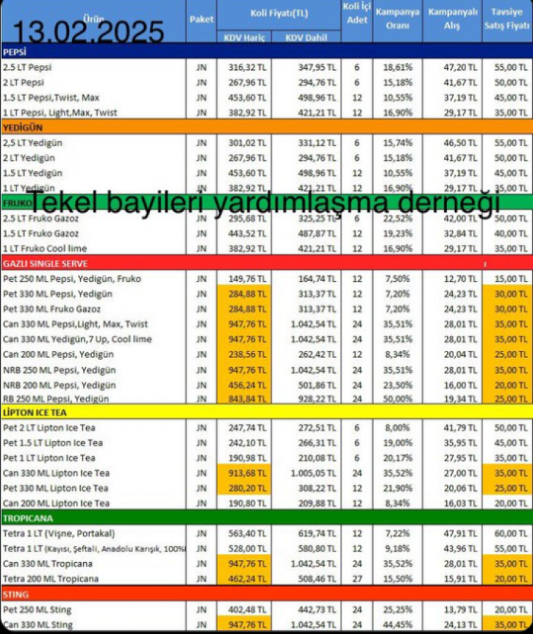 TBYD Başkanı Erol Dündar, pepsi grubuna zam yapıldığını duyurdu.