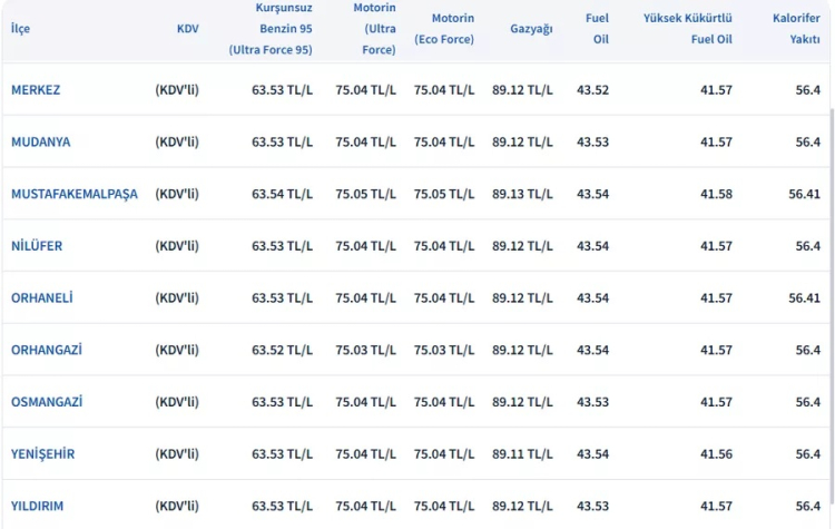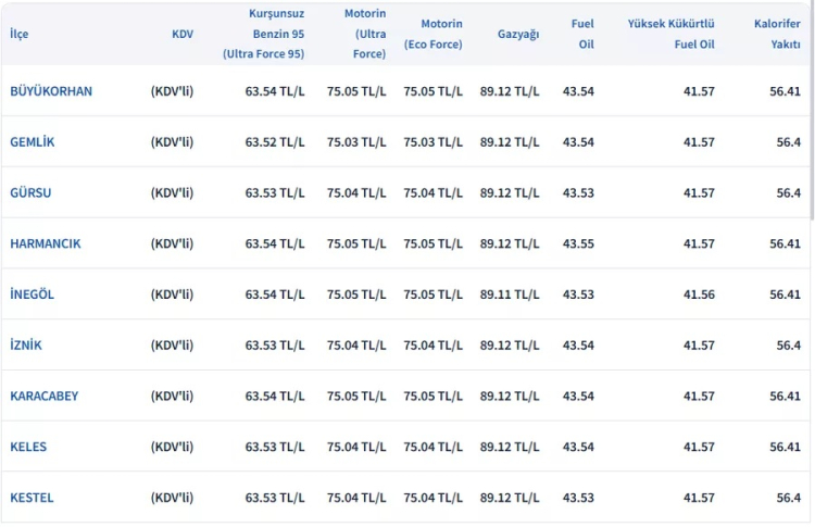 İSTANBUL GÜNCEL AKARYAKIT FİYATLARI