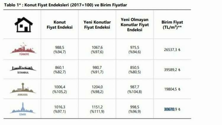 Üç büyük şehirdeki konut metrekare fiyatlarındaki değişimi gözler önüne seren endeks, aynı zamanda ülke genelindeki konut fiyatlarına ait önemli veriler içeriyor.