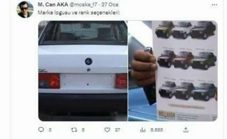 Ankara'da bulunan bir satış yeri ise TOFAŞ'ın modellerini getirdiğini ve seçeneklerinin olduğunu duyurdu.