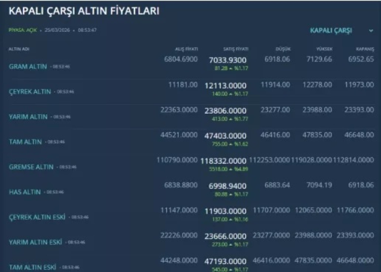 ABD Başkanı Donald Trump'ın savaşın sona erebileceğine yönelik açıklamaları piyasalarda temkinli iyimserlik yarattı. Petrol fiyatları gerilerken, altındaki yükseliş dikkat çekti. Kapalıçarşı'da gram altın 7 bin TL barajını devirdi.