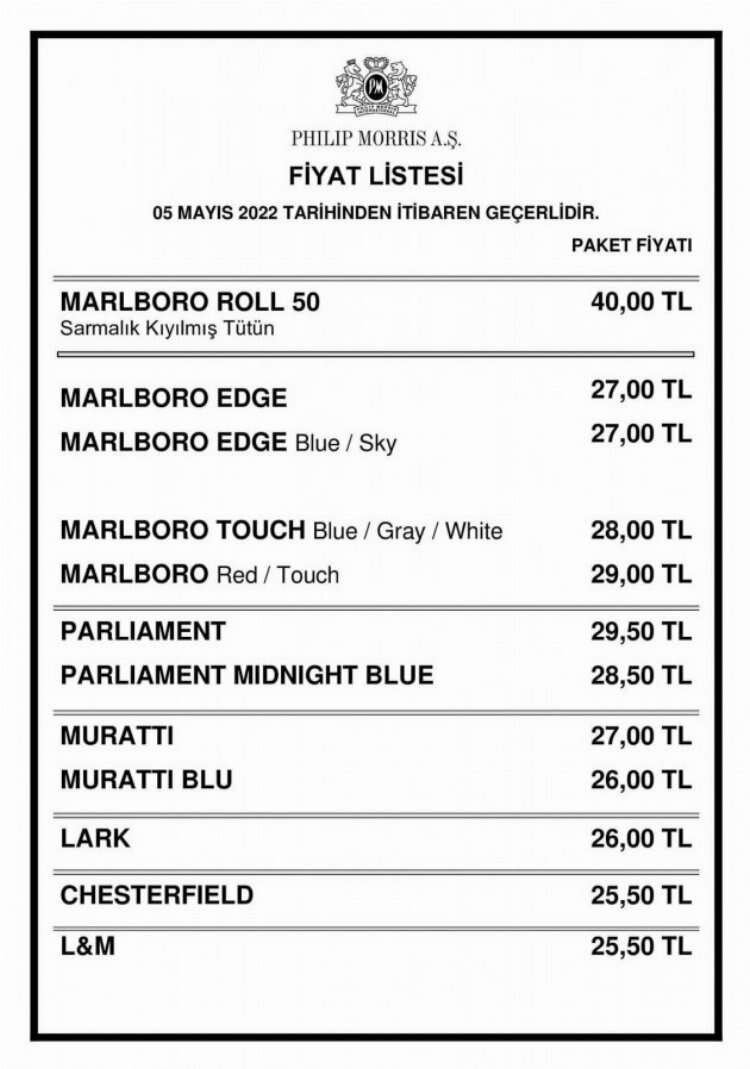 Philip Morris grubu sigaralarına zam yaptığını duyurdu.