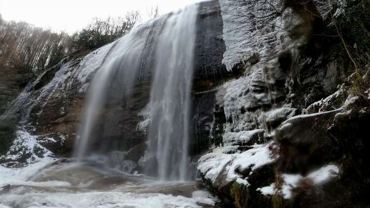 Bursa bölgesinin en güzel şelalelerinden birisi olan 36 metre yüksekliğindeki Suuçtu Şelalesi, kış mevsiminde farklı bir görüntüye bürünüyor.