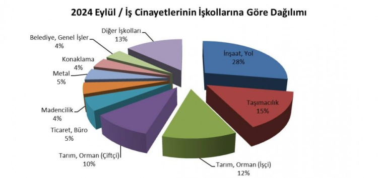 Eylül ayında iş kazalarının işkollarına göre dağılımı şöyle: