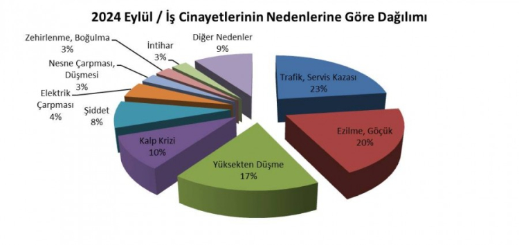 Eylül ayında iş kazalarının nedenlerine göre dağılımı şöyle: