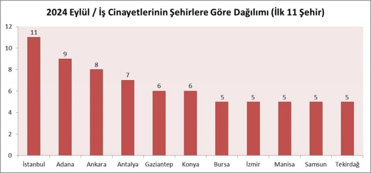 Yüzde 80'ini ulusal basından; yüzde 20'sini ise işçilerin mesai arkadaşları, aileleri, iş güvenliği uzmanları, işyeri hekimleri, sendikalar ve yerel basından öğrendiğimiz bilgilere dayanarak tespit ettiğimiz kadarıyla Eylül ayında en az 152, yılın ilk dokuz ayında en az 1371 işçi iş kazalarında hayatını kaybetti.