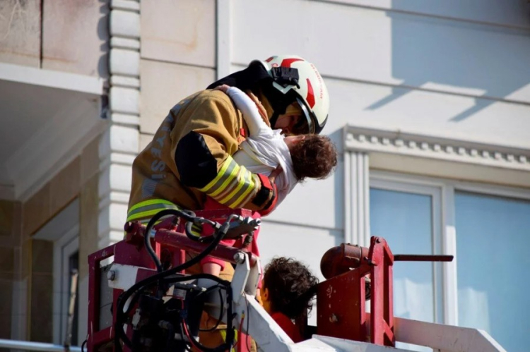 İtfaiye ekipleri, binanın üst katlarında mahsur kalan ikisi çocuk 6 kişiyi sepetli araç yardımıyla kurtardı.