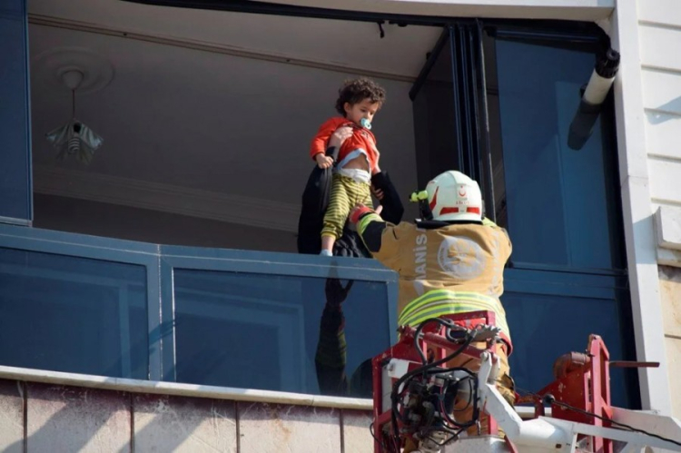 Manisa'da 7 katlı apartmanda çıkan yangın paniğe neden oldu. Üst katlarda mahsur kalan ikisi çocuk 6 kişi itfaiye ekipleri tarafından kurtarıldı.
