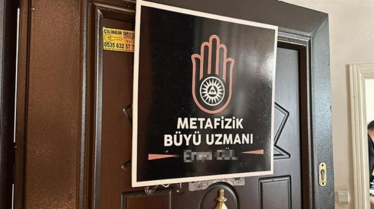 İncelemede ayrıca şüphelilerden E.G.'nin iş yeri olarak kullandığı dairenin girişine 'metafizik büyü uzmanı' yazılı tabela astığı, 'açılışa özel şok fiyatlar' başlığı adıyla da el broşürü bastırdığı belirlendi.