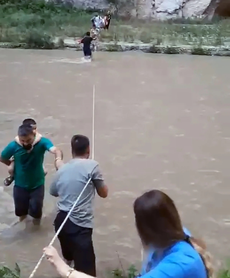 Ekiplerin, halat ve can simitleriyle müdahalesiyle mahsur kalanlar, çayın karşısına geçirilerek kurtarıldı.