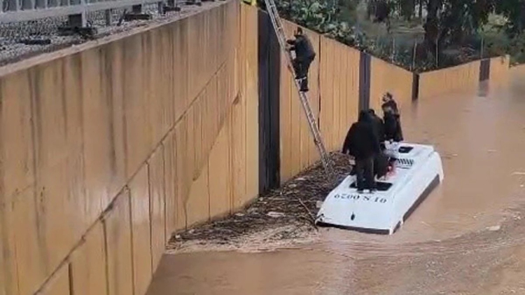 Sarıçam ilçesinde sağanak yağışla birlikte bir servis aracı suya gömüldü. Servis aracında mahsur kalanlar itfaiye ekiplerince uzatılan merdivenle kurtarıldı.