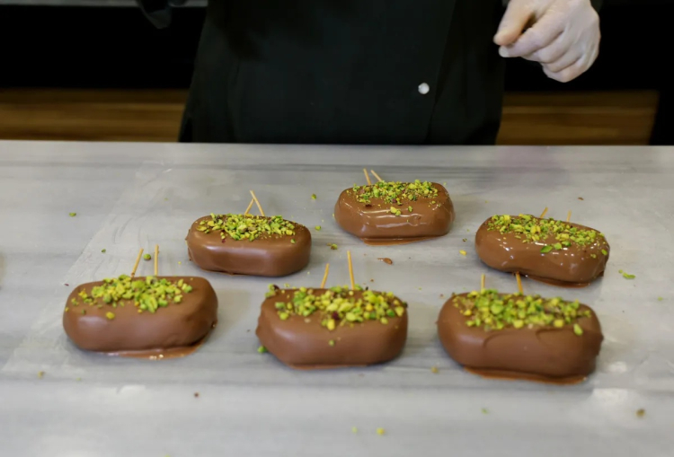 Tatlıcı Zeynep Geyik, "Adana sıcaklarından dolayı insanlar soğuk, serinletici tatlılara yöneliyor. Bizde bunun için fıstık ezmeli, çikolata kaplı dondurma yaptık.