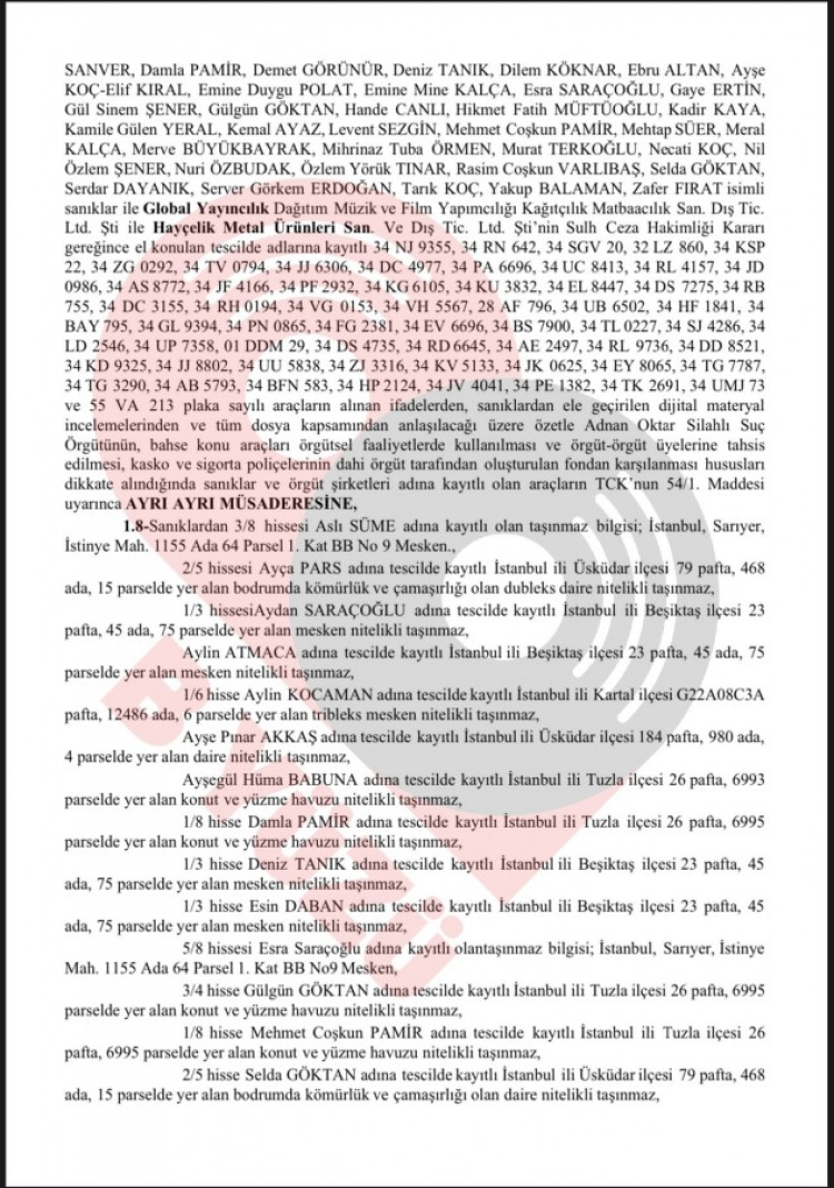Adnan Oktar örgütüne yönelik soruşturma derinleştirilirken mahkeme sorgusunda aylık 3 bin 500 lira geliri olduğunu iddia eden Oktar'ın 1 milyar dolarlık mal varlığı olduğu detayı da gün yüzüne çıkmıştı. MASAK'ın raporunda Oktar'ın toplam servetin 200 milyon dolar olduğu detayına da yer verilmişti. Mali polis ise banka, tapu kayıtları ve örgüte ait iş yerlerinin değerlerini hesaplarken örgütün 1 milyar dolarlık bir serveti yönettiği ortaya çıkmıştı.