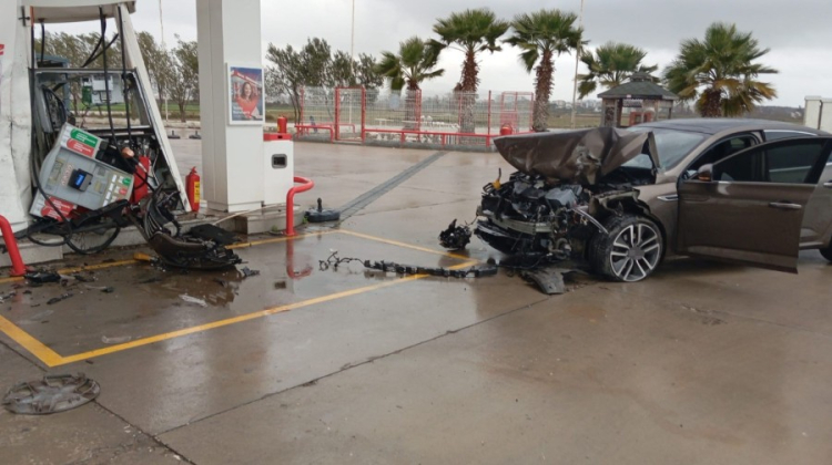 Antalya'da D-400 kara yolunda seyir halindeki otomobil akaryakıt istasyonuna daldı. Otomobil, yakıt alan bir başka araca çarpıp yakıt pompasını parçalarken, pompa görevlisi aracın altında kalmaktan saniyelerle kurtuldu.
