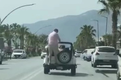 Güvenlik kurallarını hiçe sayarak araç üzerinde akrobatik hareketler yapan turiste tepki gösteren bir vatandaş, "Avrupa’dan gelmişler ama yaptıkları işe bak" dedi.