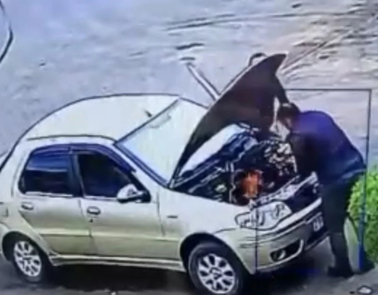 Kayapınar ilçesinde sanayi sitesinde alev alan bir otomobilde çıkan yangın çevredekilerin müdahalesiyle söndürülürken, bir kişinin üfleyerek yangını söndürmeye çalıştığı anlar kameraya yansıdı.