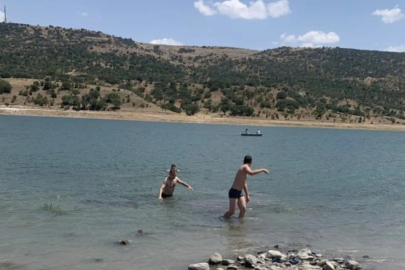 Buna rağmen serinlemek isteyen 5 kişi yüzme yasağı bulunan baraja girdi.