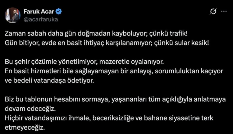 En basit hizmetleri bile sağlayamayan bir anlayış, sorumluluktan kaçıyor ve bedeli vatandaşa ödetiyor.