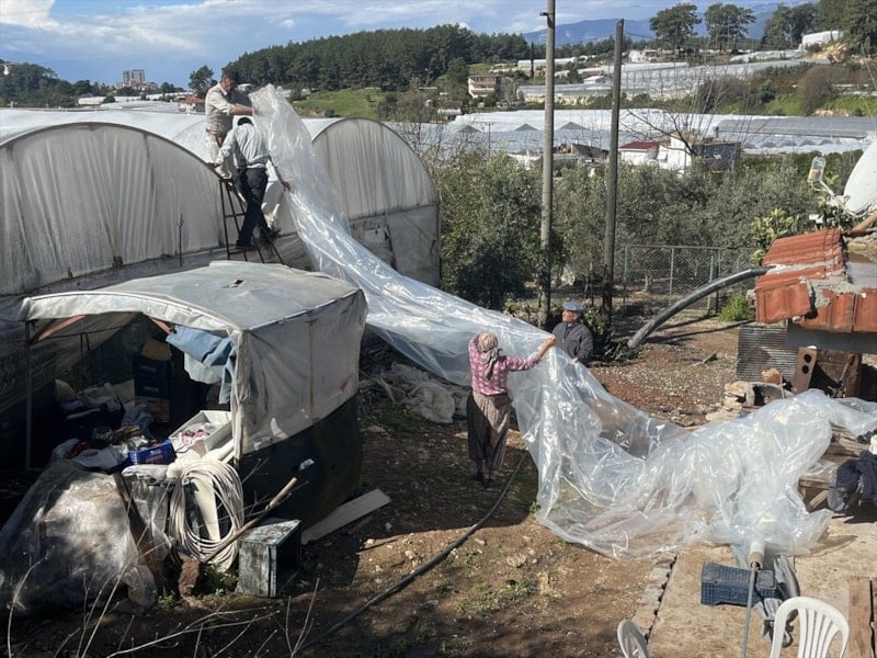 Üreticiler sabahın erken saatlerinden itibaren seralarındaki hasarı gidermek için çalışmalarına başladı.