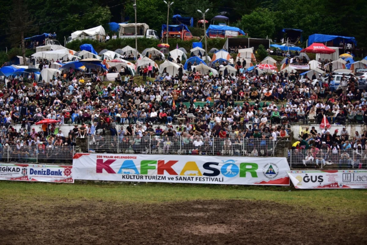 Artvin'de bu yıl 43'üncüsü düzenlenen ve 4 gün sürecek olan Kafkasör Kültür Sanat ve Turizm Festivali'nin 3'üncü gününde boğa güreşi heyecanı devam ediyor.