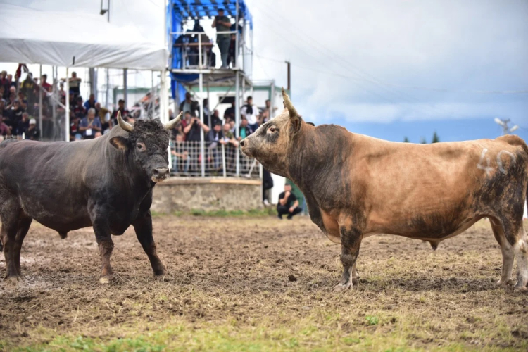 1200 rakımlı Kakfasör Yaylası'ndaki arenada organize edilen güreşler için günler öncesinden bölgeye gelen izleyiciler, kıyasıya geçen boğa güreşlerini heyecanla izledi.