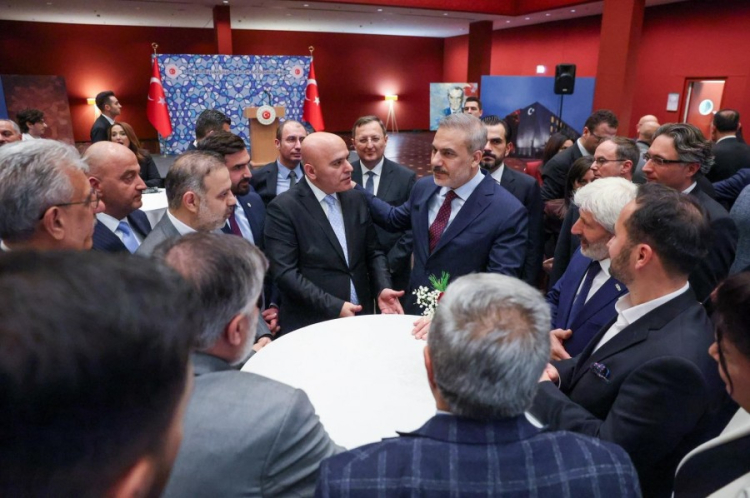 Dışişleri Bakanı Hakan Fidan, Almanya'ya gerçekleştirdiği resmi ziyaret kapsamında Türkiye'nin Berlin Büyükelçiliği'nde Türk sivil toplum kuruluşlarından temsilciler, iş insanları ve basın mensuplarıyla bir araya geldi.
